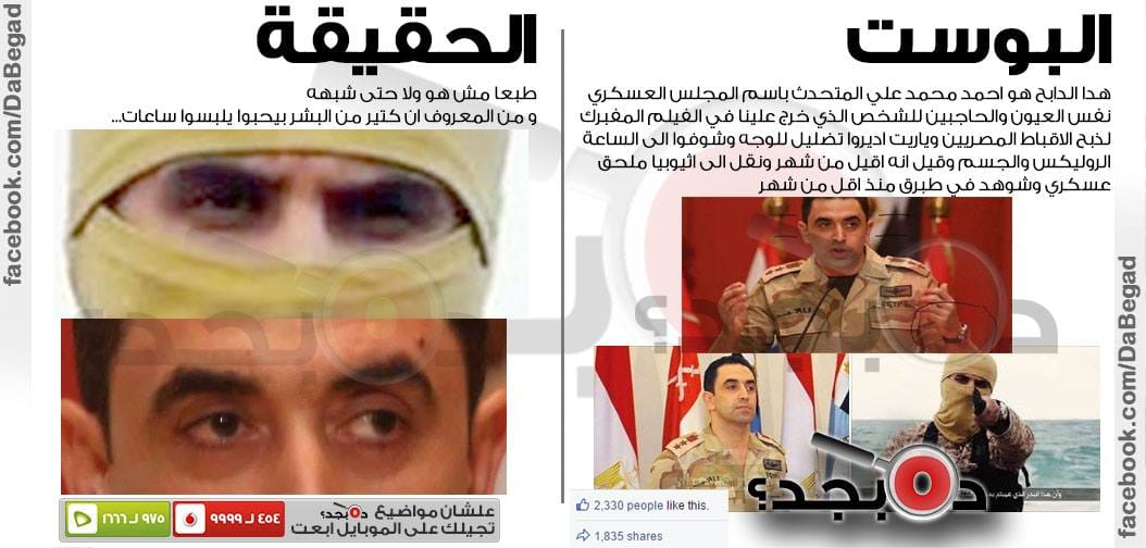 اشاعة ان العقيد أحمد علي المتحدث العسكري المصري( السابق ) هو اللي ذبح الأقباط في ليبيا