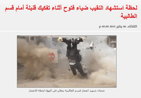 حقيقة فيديو لحظة انفجار العبوة الناسفة امام كنيسة مدينة نصر 6 يناير، 2019 سياسةالبوستلحظة انفجار العبوة الناسفة واستشهاد ضابط المفرقعات امام الكنيسة بمدينة نصر الحقيقةالفيديو من حادثة قديمة سنة ٢٠١٥ قدام قسم الطالبية مش من حادثة الكنيسةالمصادرwww.youm7.comenglish.alarabiya.netمين نشر الاشاعة مين نزل البوست ده البوست على صفحتنا كلمات البحثاستشهاد انفجار عبوة كنيسةالسابق حقيقة صورة ارملة الشيخ عماد عفتالتالي حقيقة أصل كلمة (بوليس)