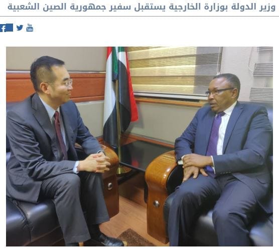 وزير سوداني يستقبل السفير الصيني في الخرطوم وهو يرتدي الكمامات مع العلم أن السفير الصيني موجود في السودان منذ 10 سنوات !!!