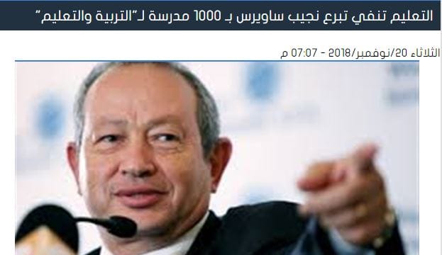 تبرع رجل الاعمال نجيب ساويرس بتكلفة بناء الف مدرسة في انحاء مصر في مبادرة منه وافقت عليها وزارة التعليم لمصر