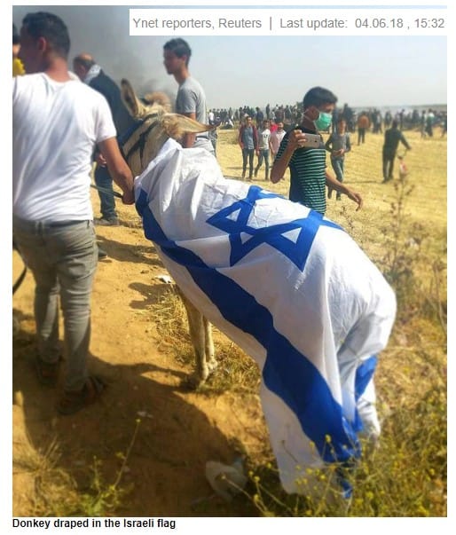 حقيقة حرق الفلسطنيين لحمار بعد ما لبسوه علم اسرائيل
