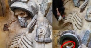 ده مش هيكل عظمي ولا حاجة، ده تمثال فني عمله فنان أوكراني اسمه ألكسندر لادانيتس (Alexander Ladanetc)، نحته في ملاهي مائية اسمها أتلانتس في مدينة يالطا في الساحل الجنوبي لشبه جزيرة القرم واللي بتطل على البحر الأسود.
